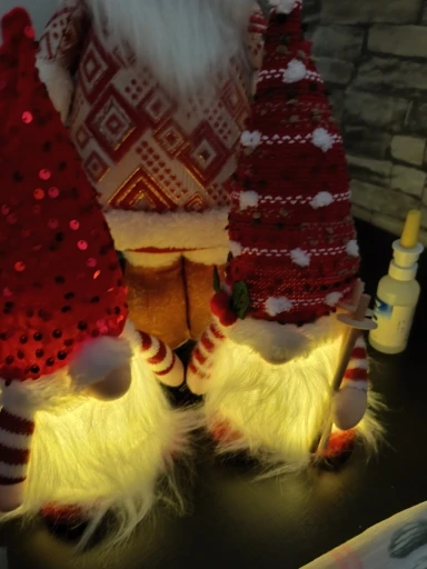 Model Name: Christmas Gnome doll. Certification: CE, RoHS. Material: Fabric + Lamp + PVC. Size: 30 x 10 x 10cm / 11.81 x 3.93 x 3.93in. Color Options: Red, Pink, Grey. Power Source: Requires 3 * AAA batteries (NOT included). Electronic Status: Non-Electronic. Chemical Safety: High-concerned chemical: None. Origin: Mainland China.